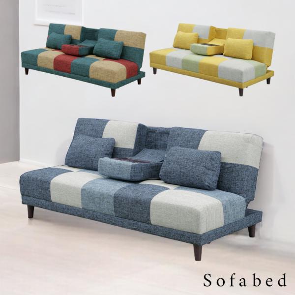 ■商品の特徴パッチワーク風デザインがアクセントのソファベッド。オールシーズン使える肌触りの良いファブリックを使用。便利なカップホルダー&テーブル付きです。ライフスタイ...