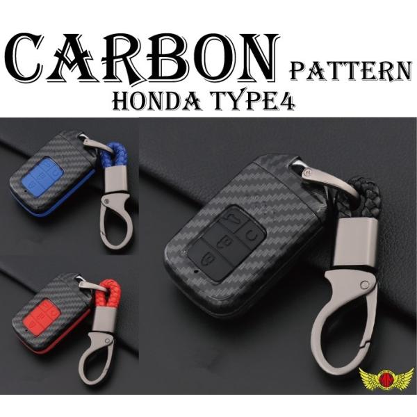 週末セール!!メール便送料無料!!ホンダ車専用 カーボン調 スマートキーケース アコード/ 3ボタン式 TYPE4 キーホルダー付き 各色