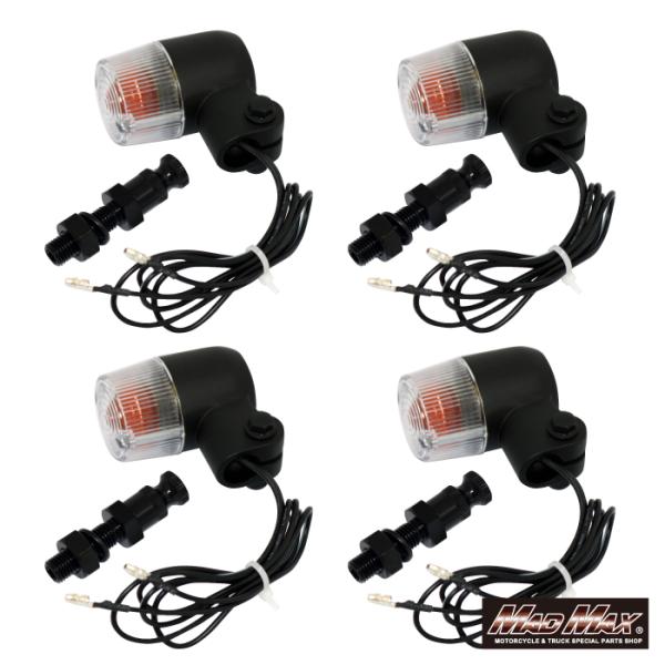 週末セール!!汎用 丸形ミニヨーロピアンウインカー ブラック/クリア M10*76mm取付ステー付き 4個セット