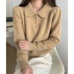 ニット セーター ポロカラー 金ボタン リブ ニット プルオーバー レディース