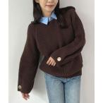 ニット セーター 2WAY ビッグカラー パールボタン ニット プルオーバー レディース