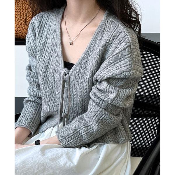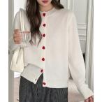 カーディガン パールボタンケーブルニットカーディガン レディース