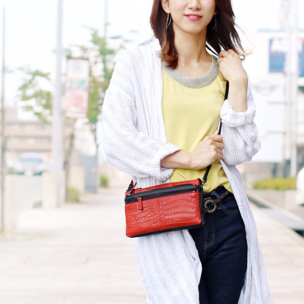 クロコダイル ミニバッグ マット加工 3WAY お財布 ショルダー ポシェット イタリア製 多機能 全6色(No.06001386)