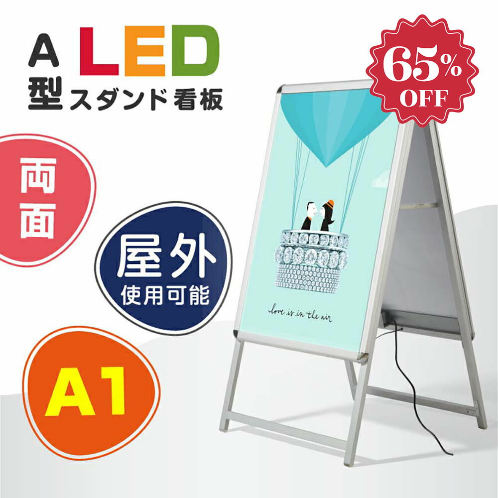 【今だけ65%OFF→衝撃価格32088円】A1 両面 看板 LED看板 A型 W658mm×H1225mm パネル看板 立て看板 スタンド看板 店舗用看板 屋外看板 ポスター入れ替え式 両面看板 前面開閉式 LEDパネル グリップ式 A型看板 シルバー