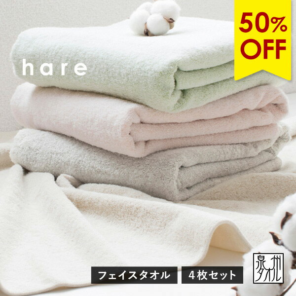 【50%OFFセール】フェイスタオル 4枚セット ハレ 日本製 泉州タオル タオル 送料無料 (ポスト投函) まとめ買い 薄手 タオルセット hare つや肌美人 新生活 なめらか おしゃれ 透かし織り 吸水速乾