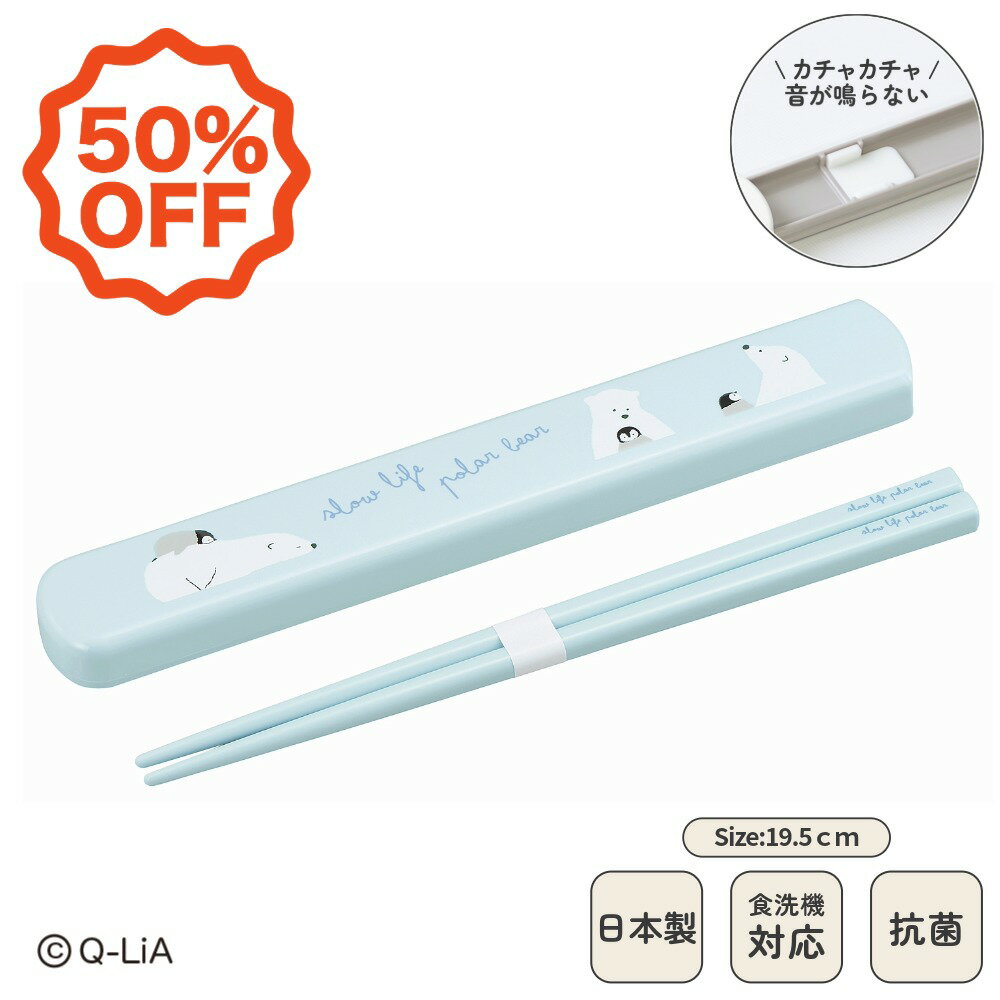 50%OFF! 日本製 音のならない 箸箱セット 食洗機対応 19.5cm 弁当用 お箸 携帯用 抗菌 乾燥機対応 マイ箸 ランチ 持ち運び 箸ケース スライド 引フタ はし すべりどめ付き プラスチック 大人用 女性 男性 お弁当 polar bear(ポーラーベア) | OSK PB HS-16 ▽