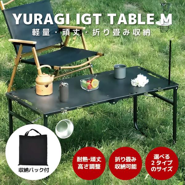 YURAGI アウトドア テーブル キャンプ Mサイズ(104×48×45cm) IGTテーブル ランタンハンガー付き ピクニック 専用収納バッグ付き BBQ バーベキュー