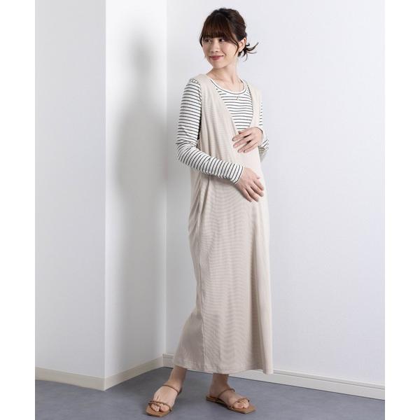 マタニティ タートルネックポンチョ & Vネックジャンパースカート 2点セット マタニティ 授乳服 産後も使える