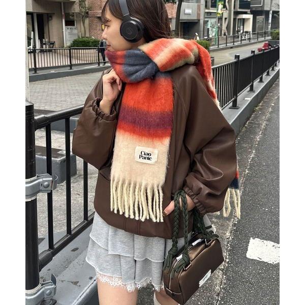 マフラー 新色追加 モヘアタッチ ボリュームフリンジマフラー 無地/チェック メンズ レディース