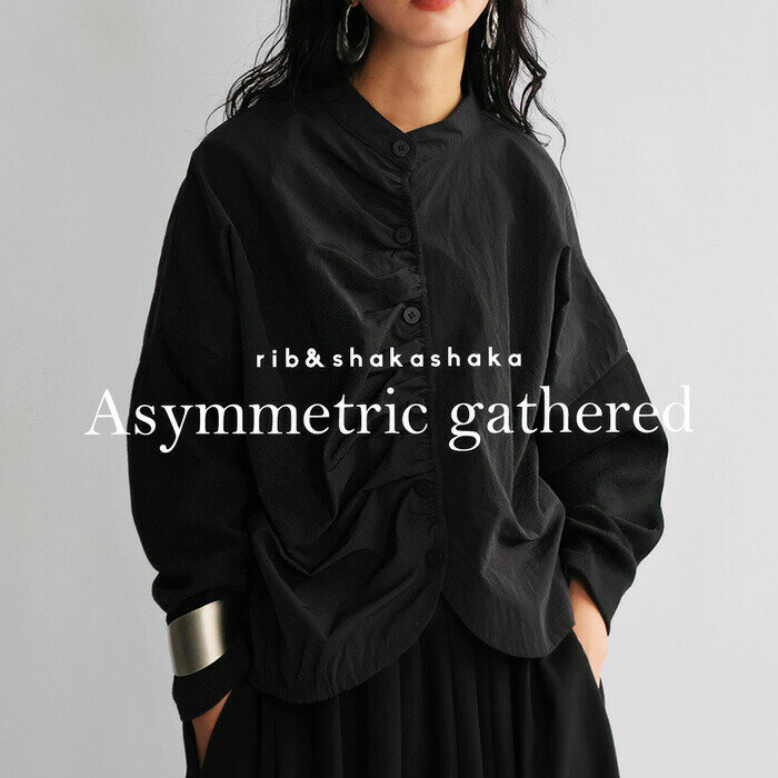 OUTLET 半額 長袖 無地 スタンドネック スタンドカラー バンドカラー 布帛 リブ袖 切り替え アシメ スリット ゆったり ハリ感 シャカシャカ シンプル モード ブラウス アシメシャツ※こち...
