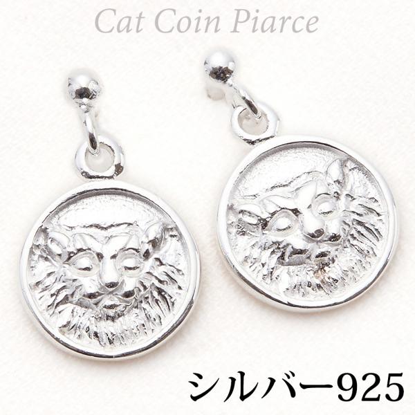 ネココインピアス シルバー925製 揺れる 彫り リアル 立体 ラウンド メダルモチーフ 小さめ アニマル 爆買