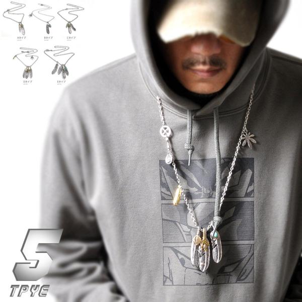 ■■ 商品説明 ■■ネイティブ感溢れるフェザーネックレスです。スタイルやシーンに合わせて5タイプをご用意。メンズ・レディースはもちろん、ペアとしてもオススメ。チェーン:全...