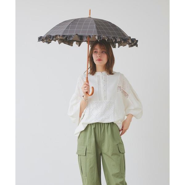 傘 完全遮光 UVカット100% 日傘 ショート傘 Paraffi パラフィ フリル チェック柄 レディース メンズ
