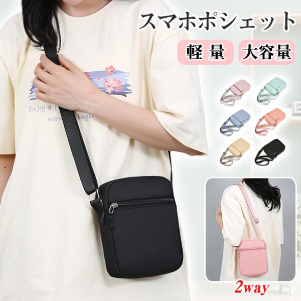 スマホポーチ スマホショルダー スマホポシェット レディース メンズ 財布 ショルダーバッグ 小物入れ 斜めがけ 肩掛け 無地 軽量 シンプル おしゃれ