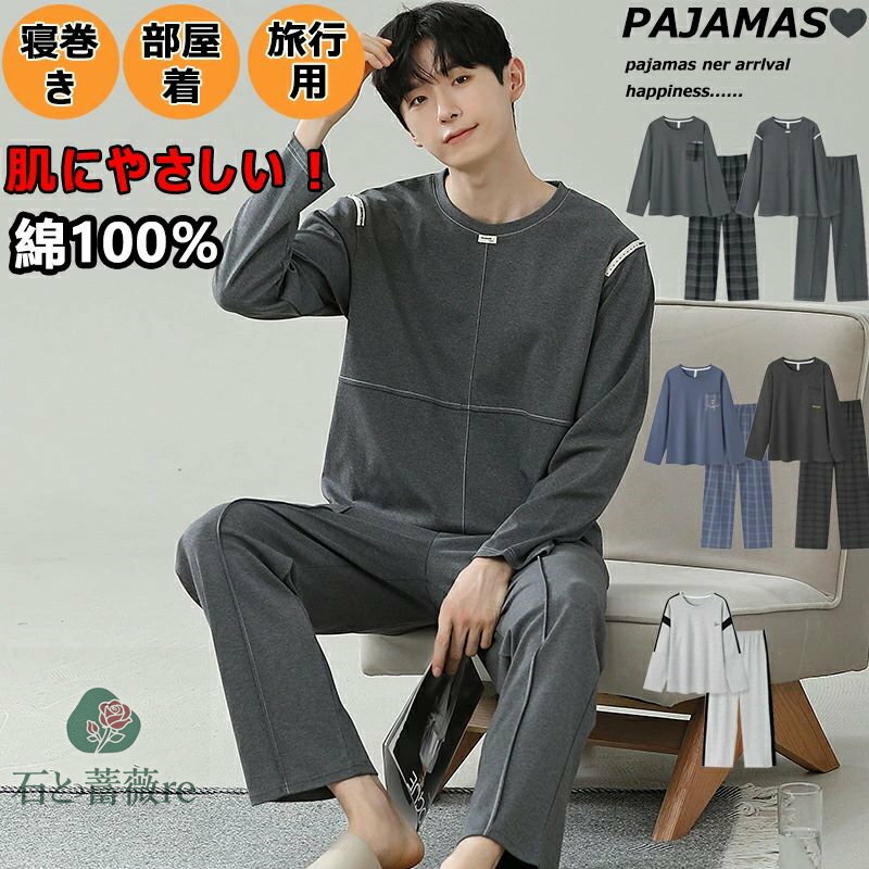 72H!3枚目75%OFF!パジャマ メンズ 長袖 秋 秋用 100%綿 上下セット 薄手 秋涼対応 部屋着 寝巻き ルームウェア 丸首 男性用 70-70代 50-90kg対応 パジャマメンズ綿 入院用 家着 おしゃれ 肌に優しい 無地 紳士パジャマ メンズパジャマ 秋パジャマメンズ 学生 息子 友人 父