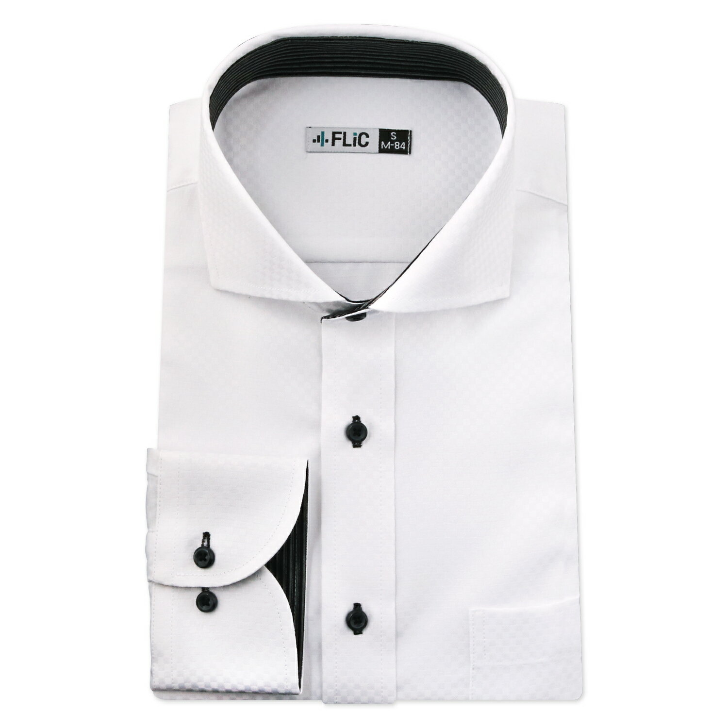 【半額/50%OFF★楽天スーパーSALE限定】ワイシャツ 長袖 メンズ 形態安定 ホリゾンタルカラー 織柄 ホワイト 白 ドレスシャツ Yシャツ カッターシャツ ビジネス 大きいサイズ スリム おしゃれ / dh3303