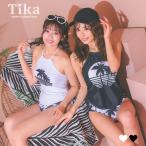 水着レディース 水着 ビキニ ヤシの木 プリント アメリカンスリーブ ドロスト ビスチェ 体型カバー ギャル タンキニ