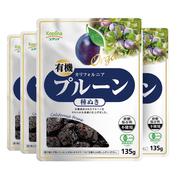 有機プルーン 種抜き 135g 4袋 (ドライフルーツ/カリフォルニア産/砂糖・保存料不使用/鉄分/食物繊維/オーガニック/JAS/健康)【爆買】