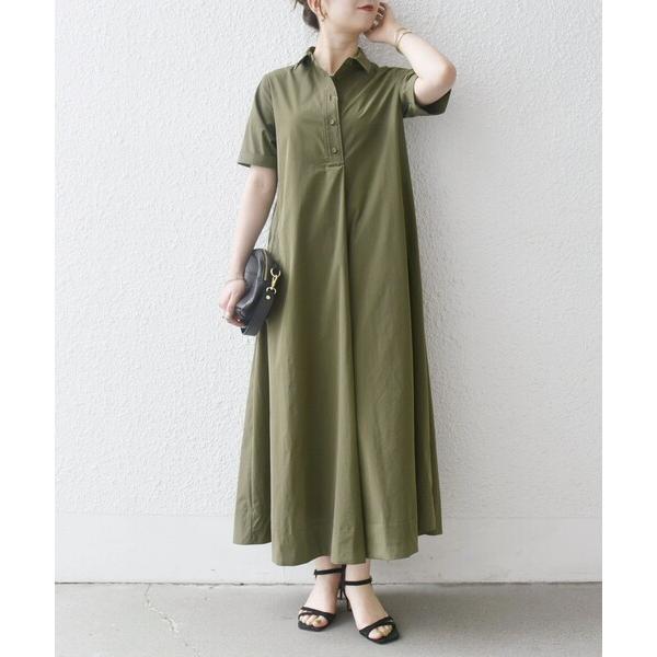 「SHIPS any」 シャツワンピース ONE SIZE オリーブ レディース