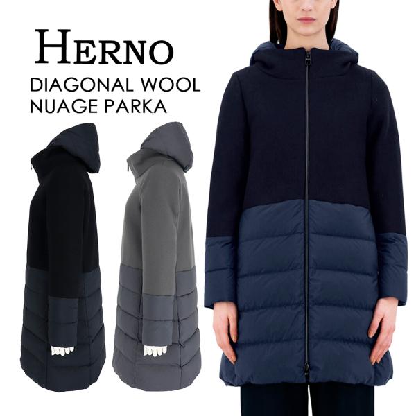 ヘルノ HERNO ダウンジャケット レディース セミロング ダウンコート フード付き ウール ナイロン 切り替え アウター Aライン 大きいサイズあり PI001760D