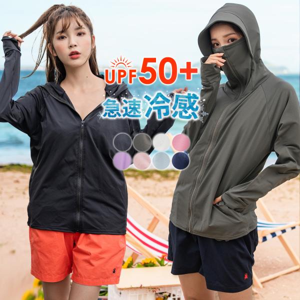 メール便送料無料 水着通販ストア ラッシュガード レディース トップス 長袖 体型カバー ラッシュパーカー UVカット率 99%以上 UPF50+ 接触冷感 急速冷感 羽織 ジップアップ 洋服見え フー...