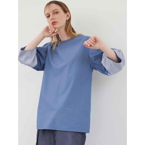 tシャツ シアー切替えランタンスリーブカットソー/接触冷感/洗える レディース