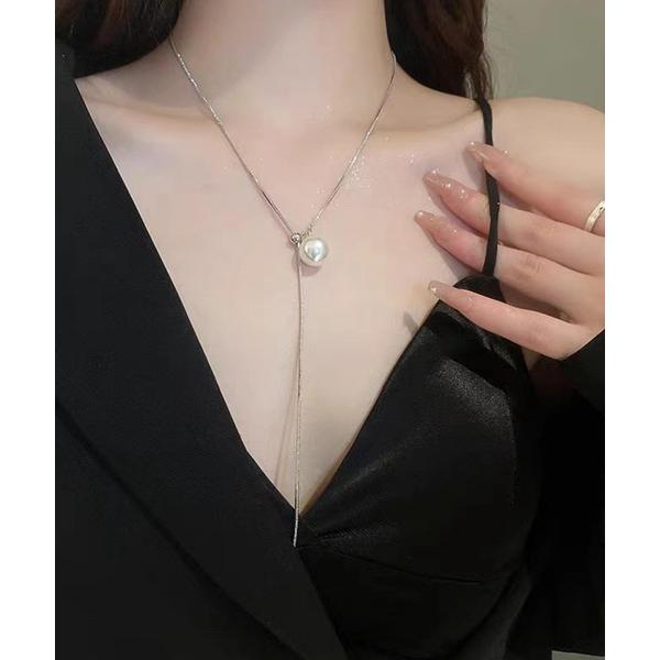 ネックレス パール メタルループタイネックレス Yシェイプ レディース