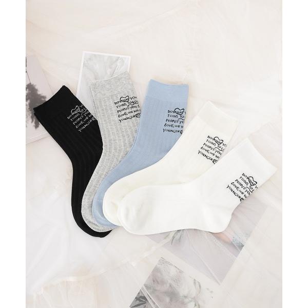 靴下 「5足セット」バック レター ロゴ ソックス レディース