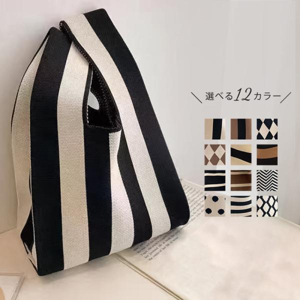 メール便送料無料 ニット トートバッグ 小さめ 手提げ レディース ミニトートバッグ ハンドバッグ エコバック マルシェバッグ サブバッグ 雑貨 かばん 鞄 カバン 軽量 ストライプ ドッ...