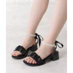 サンダル リボン メタリック スクエアトゥ バックストラップ付き サンダル レディース