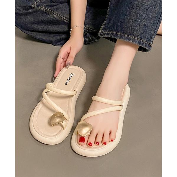 サンダル レザー調 メタル モチーフ ストラップ トング サンダル レディース