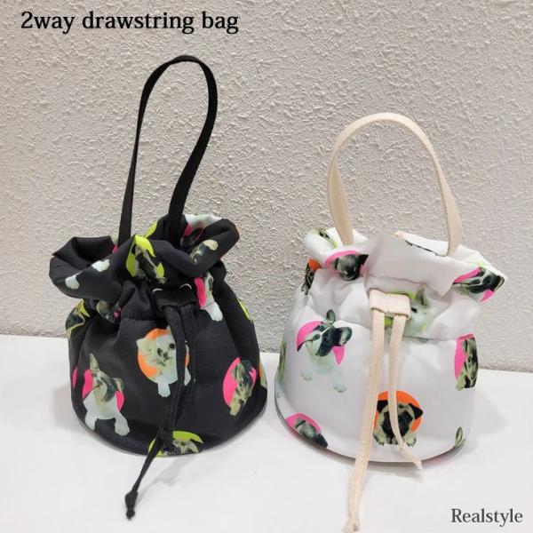 バッグ レディース ショルダー ハンド 巾着 ドッグ 犬 2way 布 キャンバス 斜めがけ 肩掛け カジュアル 個性的 韓国ファッション 爆買