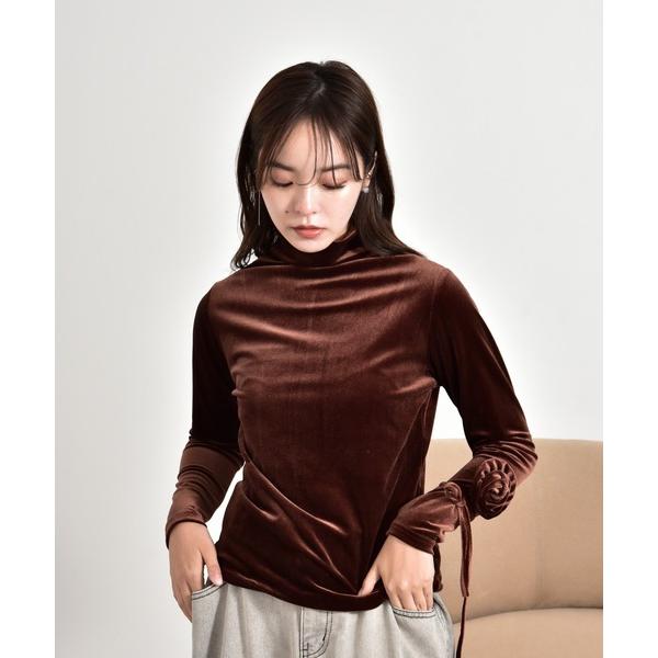 tシャツ チョーカー付きハイネックベロアTシャツ レディース