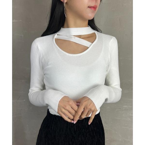 ニット セーター チョーカーデザイン Uネック ニットプルオーバー レディース