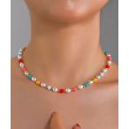 ネックレス YU-KA:マルチカラービーズ&パールネックレス レディース
