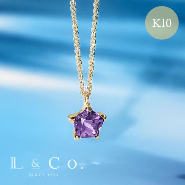 ネックレス レディース 10金 K10 イエローゴールド チェーン 揺れる アメジスト シンプル スター 星 プレゼント ギフト L&Co. エルアンドコー