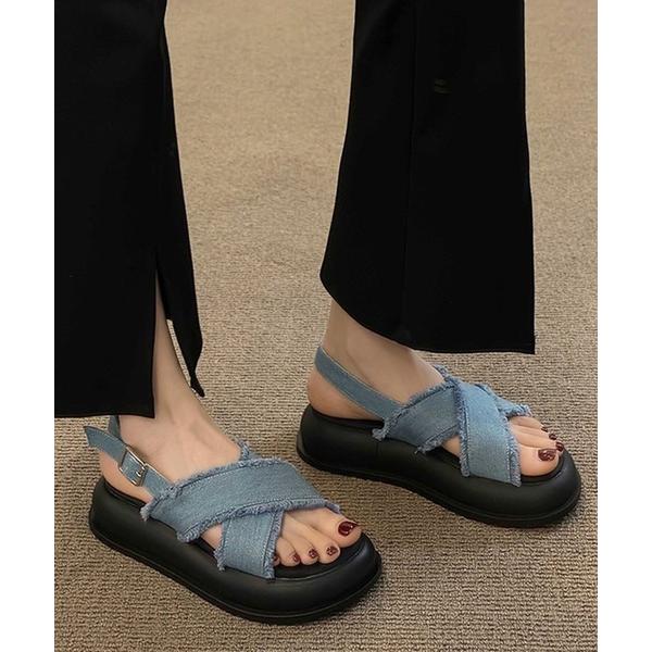 サンダル リボン ダブルクロス バックストラップ 厚底 サンダル レディース