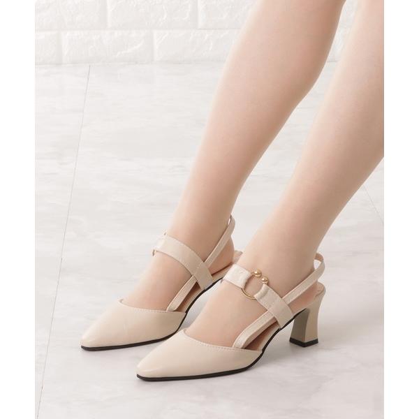 パンプス ポインテッドトゥバックストラップフラットパンプス