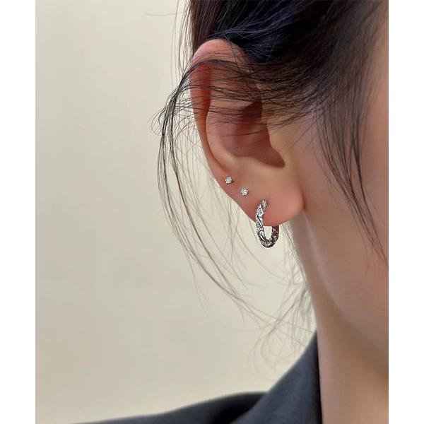 ピアス スクリューデザイン/ジルコンストーンフープピアス/ストーンリボンピアス レディース