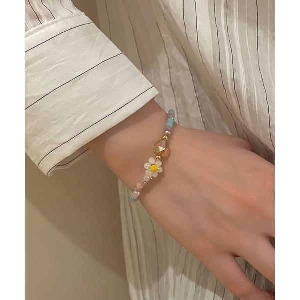 ブレスレット YU-KA:フラワービーズブレスレット flower beads bracelet レディース