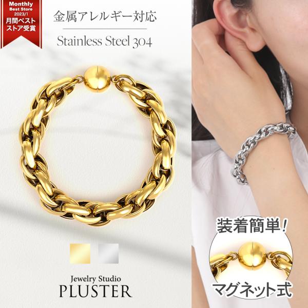 ブレスレット レディース メンズ ペア シルバー つけっぱなし 金属アレルギー ステンレス チェーン チェーンブレスレット 留め具 簡単 マグネット 30%OFF