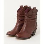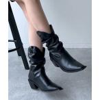 ブーツ カバー風チャンキーウエスタンショートブーツ レディース