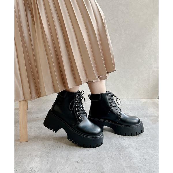 ブーツ ボリュームソールラウンドレースアップブーツ レディース