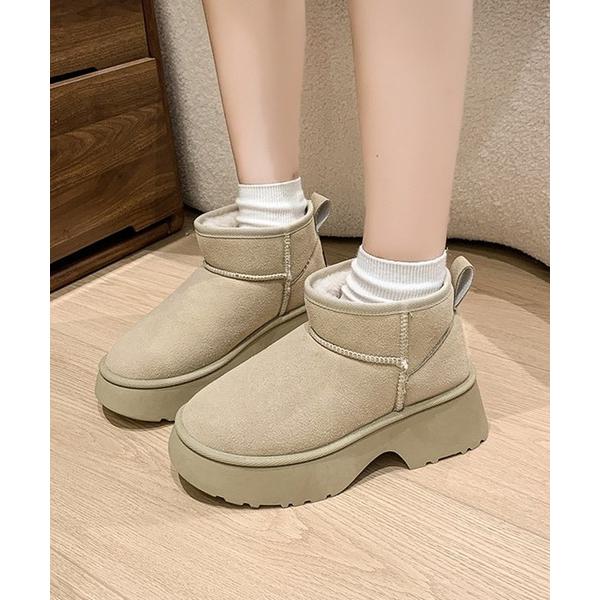 ブーツ スエード調 厚底 ムートン ショート ブーツ レディース