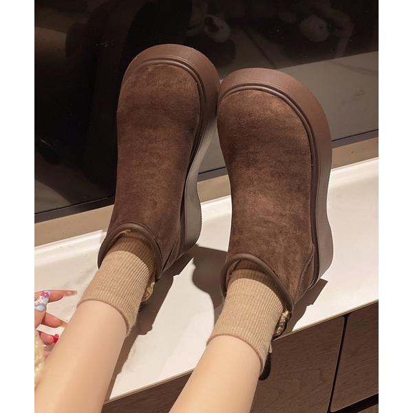 ブーツ スエード調 厚底 ムートン風 ショート ブーツ レディース