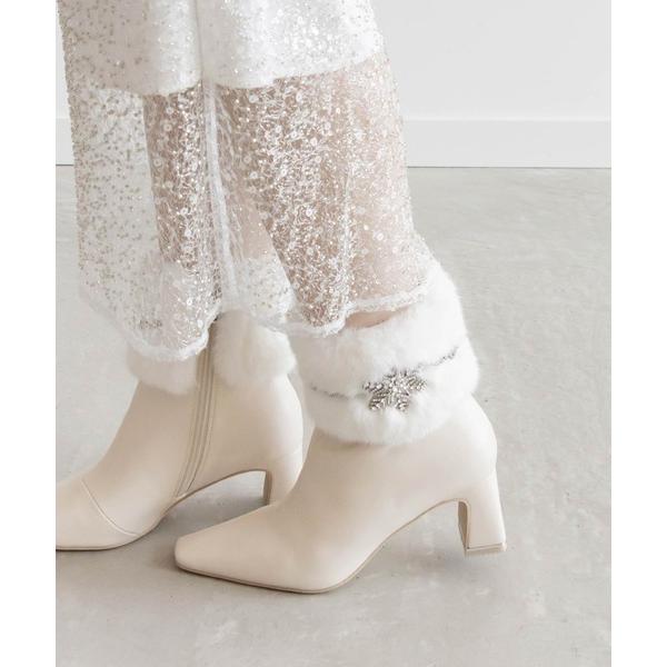 ブーツ ビジュー×ファー 2WAYショートブーツ レディース