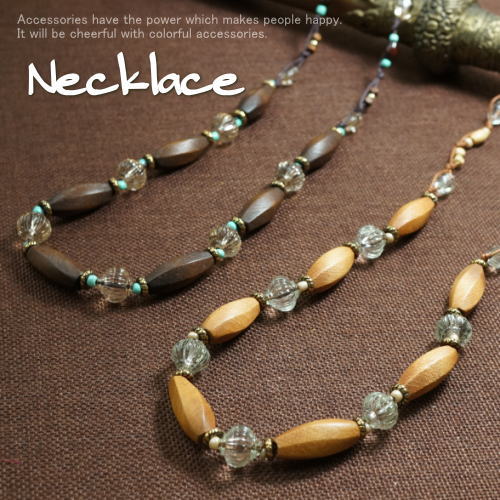 \半額★50%OFF/ウッドとクリスタルのパーツの組み合わせが絶妙なロングネックレスレディースネックレス 夏アクセ