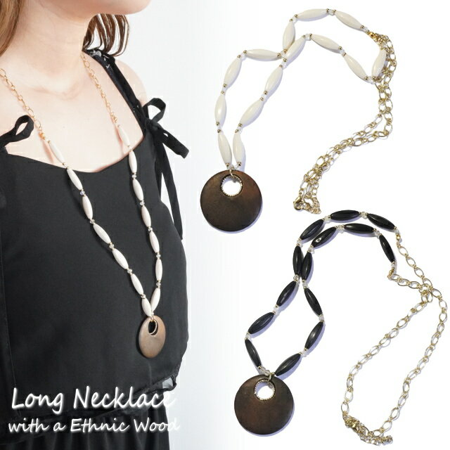 \半額★50%OFF/ロングネックレス ウッド レディースネックレス ネイティブアメリカン 夏 木製 ラウンド 夏アクセ ボリュームアクセ