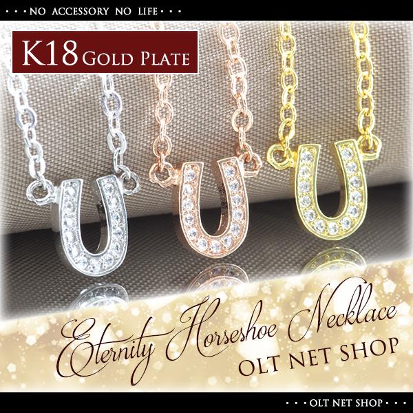 【50%OFF 本日限り!】 ネックレス レディース 馬蹄 ホースシュー 幸運 czダイヤ 18金 18kコーティング ピンクゴールド ゴールド シルバー K18GP
