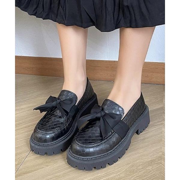 ローファー リボン付き フェミニン厚底ボリュームヒールローファー レディース